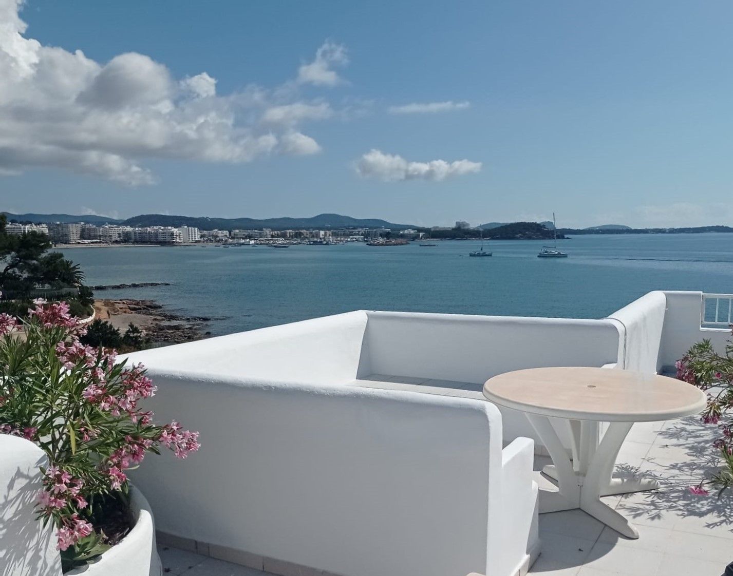 Blick aufs Meer und den Hafen von Sta Eulalia