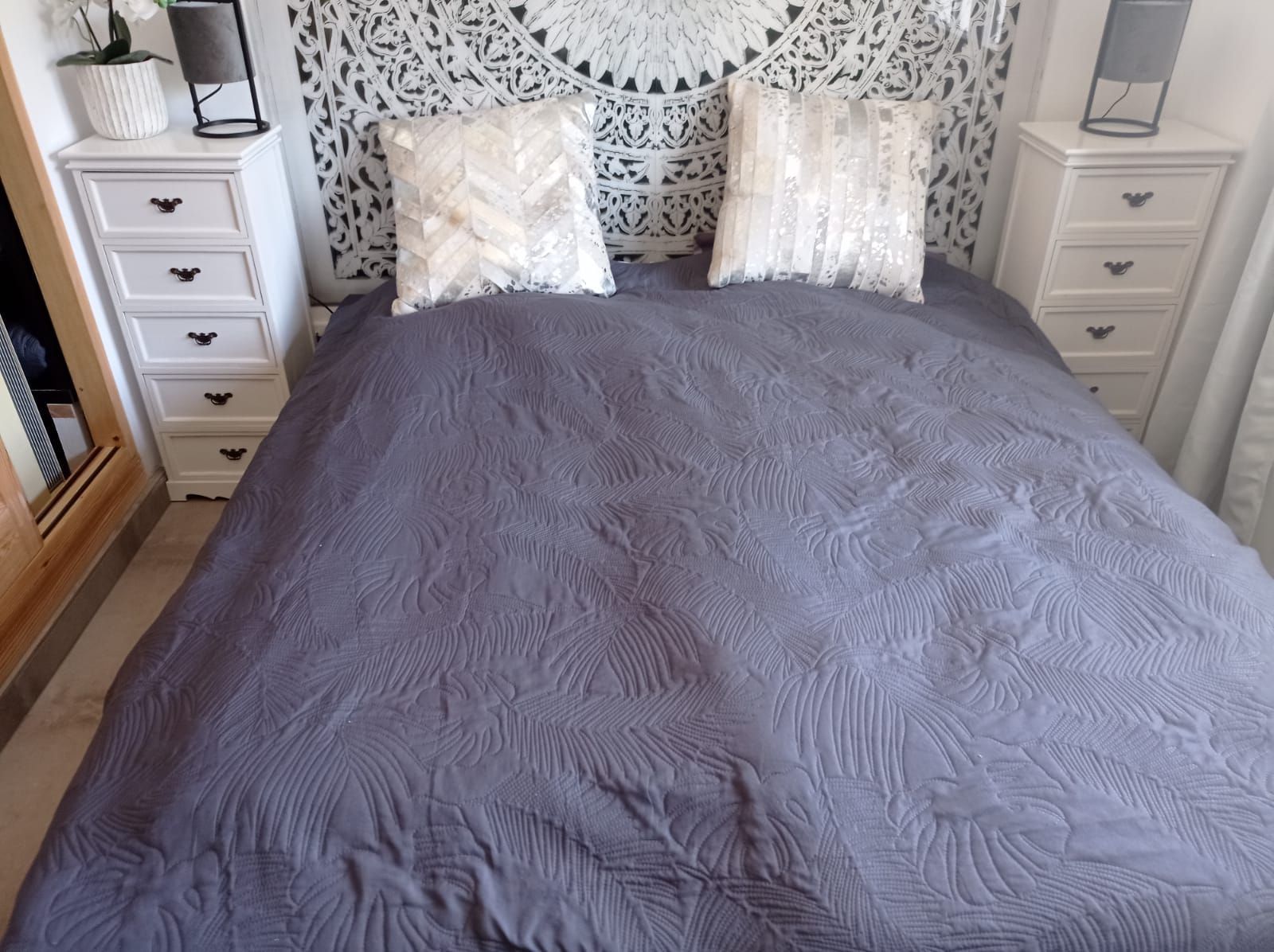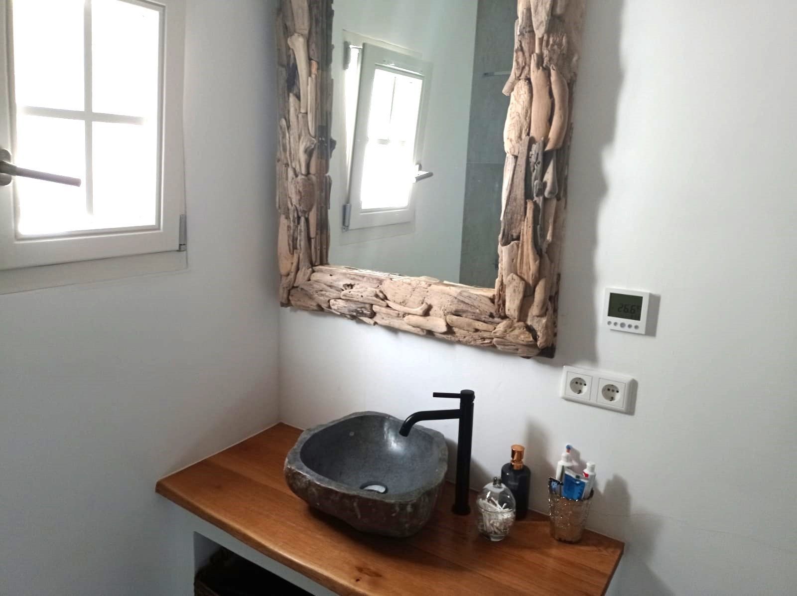 Obergeschoss : Schlafzimmer mit Bad en Suite und überdachter Terrasse mit tollem Blick auf Sta Eulalia